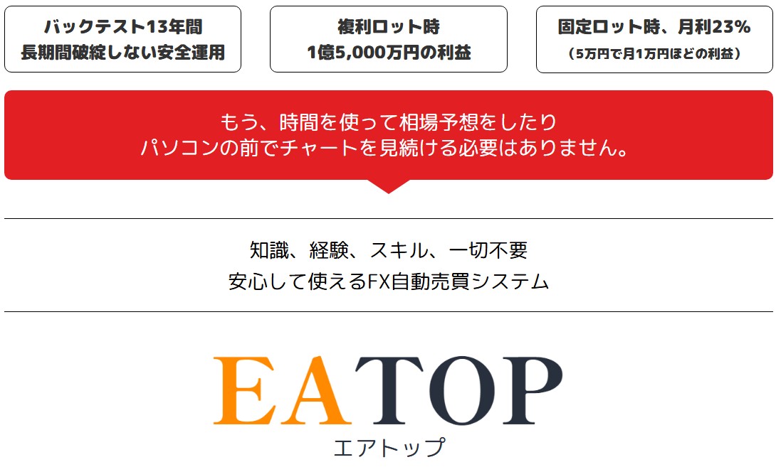 その点、EATOP(エアトップ)であれば、自動でルールに基づいて取引を行うため、感情に左右され失敗する事がありません。